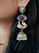 Handcrafted Kundan Jewelry set with a dual-layered necklace, green bead detailing, and matching jhumka earrings
