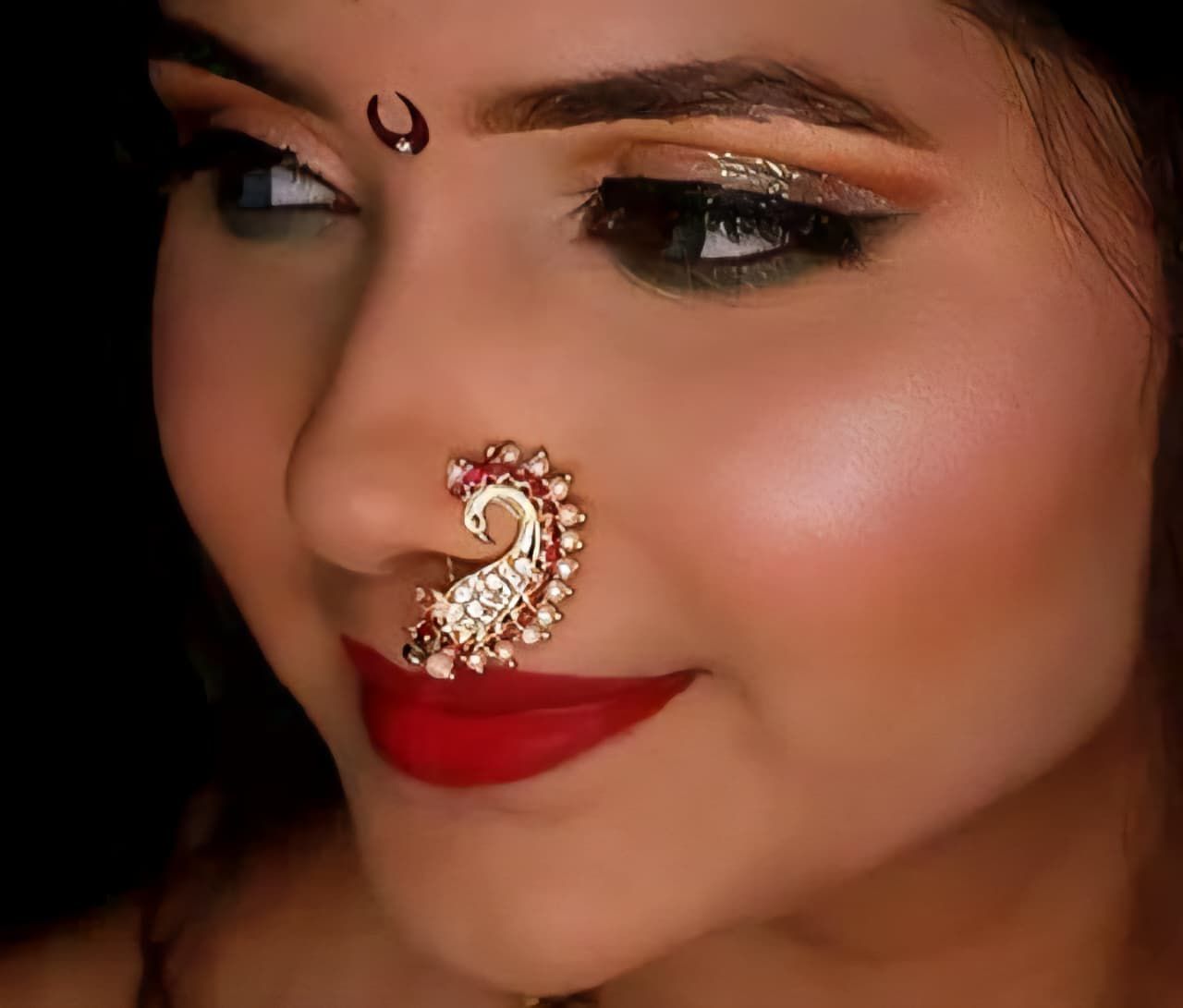Designer Peacock Side Pearl Embedded Kolhapuri Nath