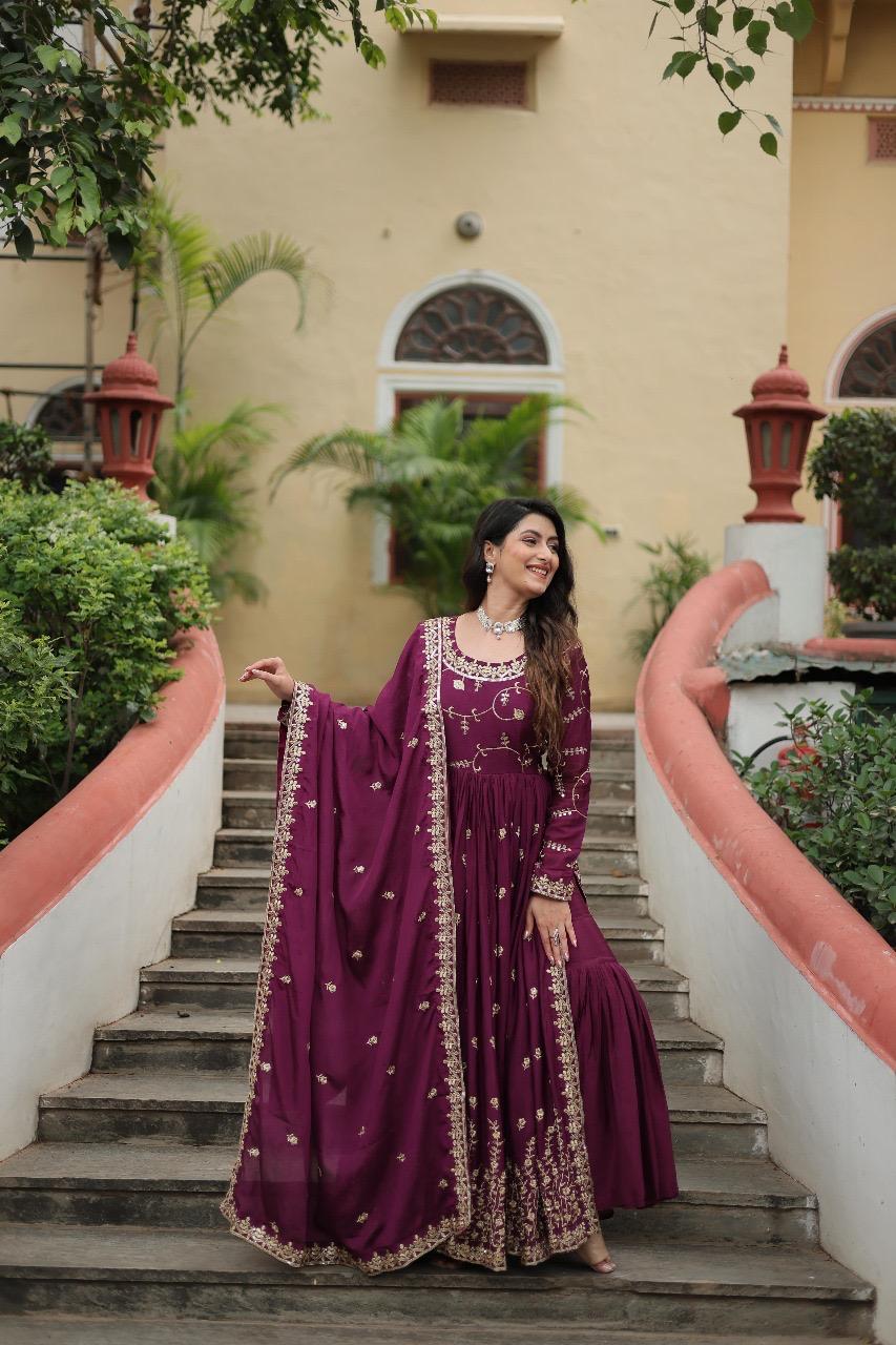 Gown Style Designer Wine Color Sharara Salwar Suit