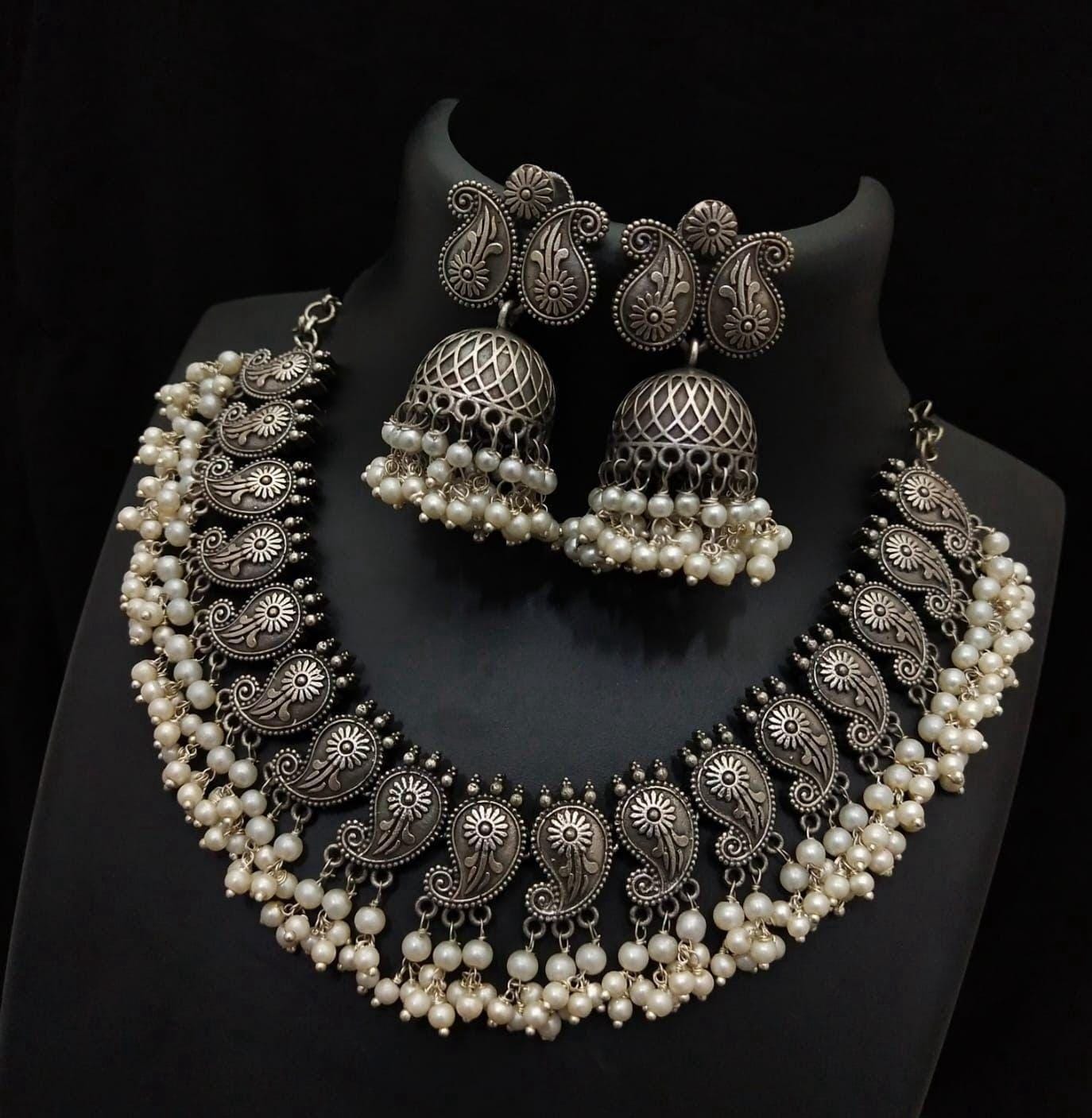 Add a touch of elegance to your ensemble with our German Silver Mango Necklace and Earrings set. Made with high quality German silver, this set is lightweight and durable, perfect for everyday wear. The delicate mango design adds a pop of color to any outfit, making it a versatile and stylish addition to your jewelry collection.