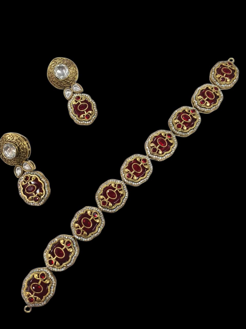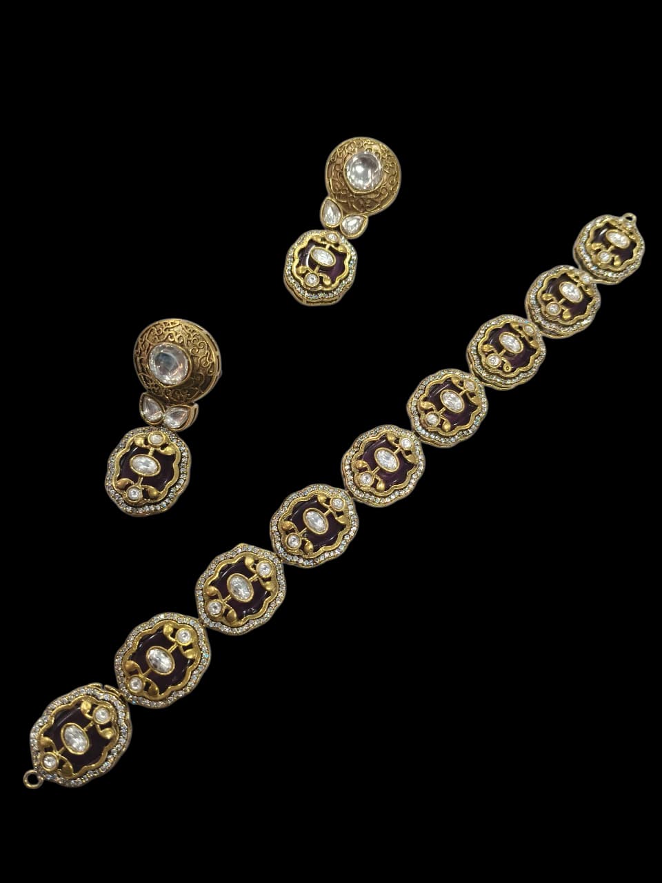 High Quality Statement Semi Precious Stones Choker Necklace with Earrings, Designer real gold jewelry look